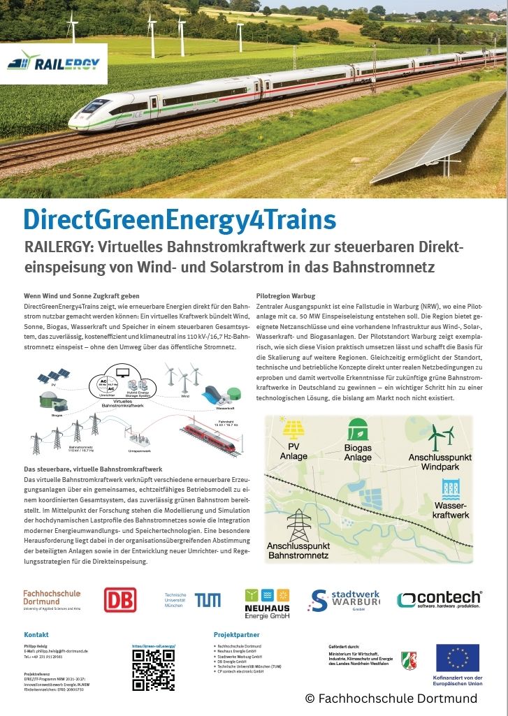 Zusätzlich wurde das Projekt über ein ausgestelltes Poster präsentiert, das den Ansatz des virtuellen Bahnstromkraftwerks und den Pilotstandort Warburg visualisierte. Viele Teilnehmende nutzten die Gelegenheit, sich am Poster weitergehend über die technischen und konzeptionellen Details zu informieren.